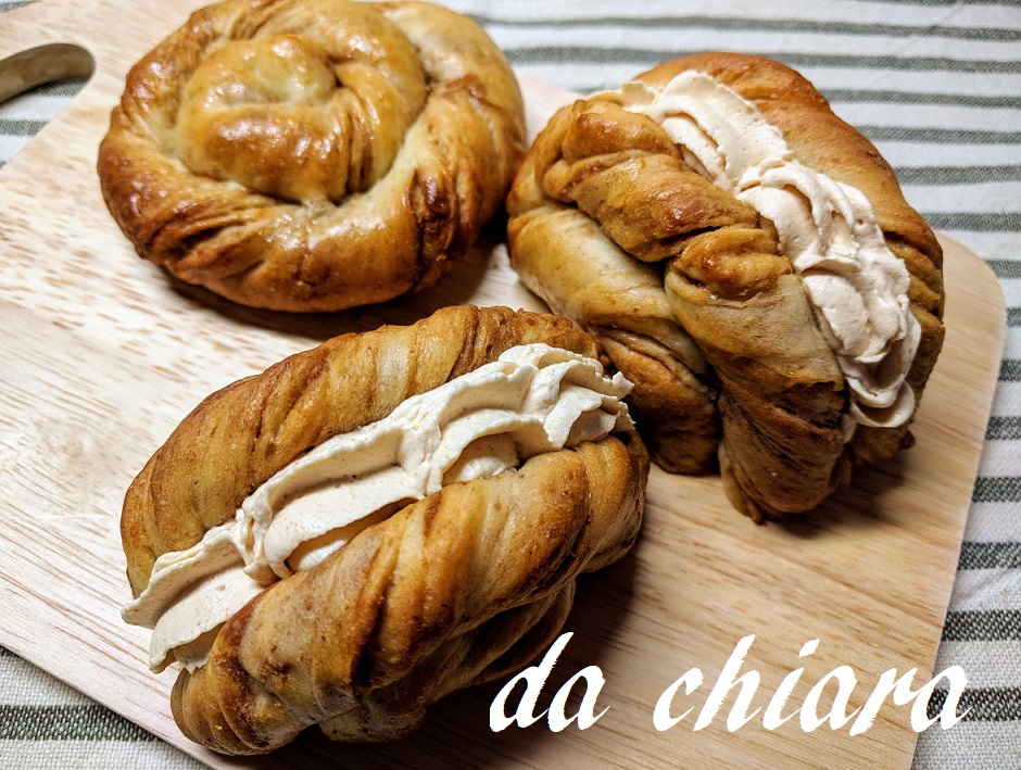 ティラミス風のクリームはマスカルポーネではなくクリームチーズを使っていますが、クリームチーズの方がしっかりしているので、今回のパン生地とのバランスも良かったです。
